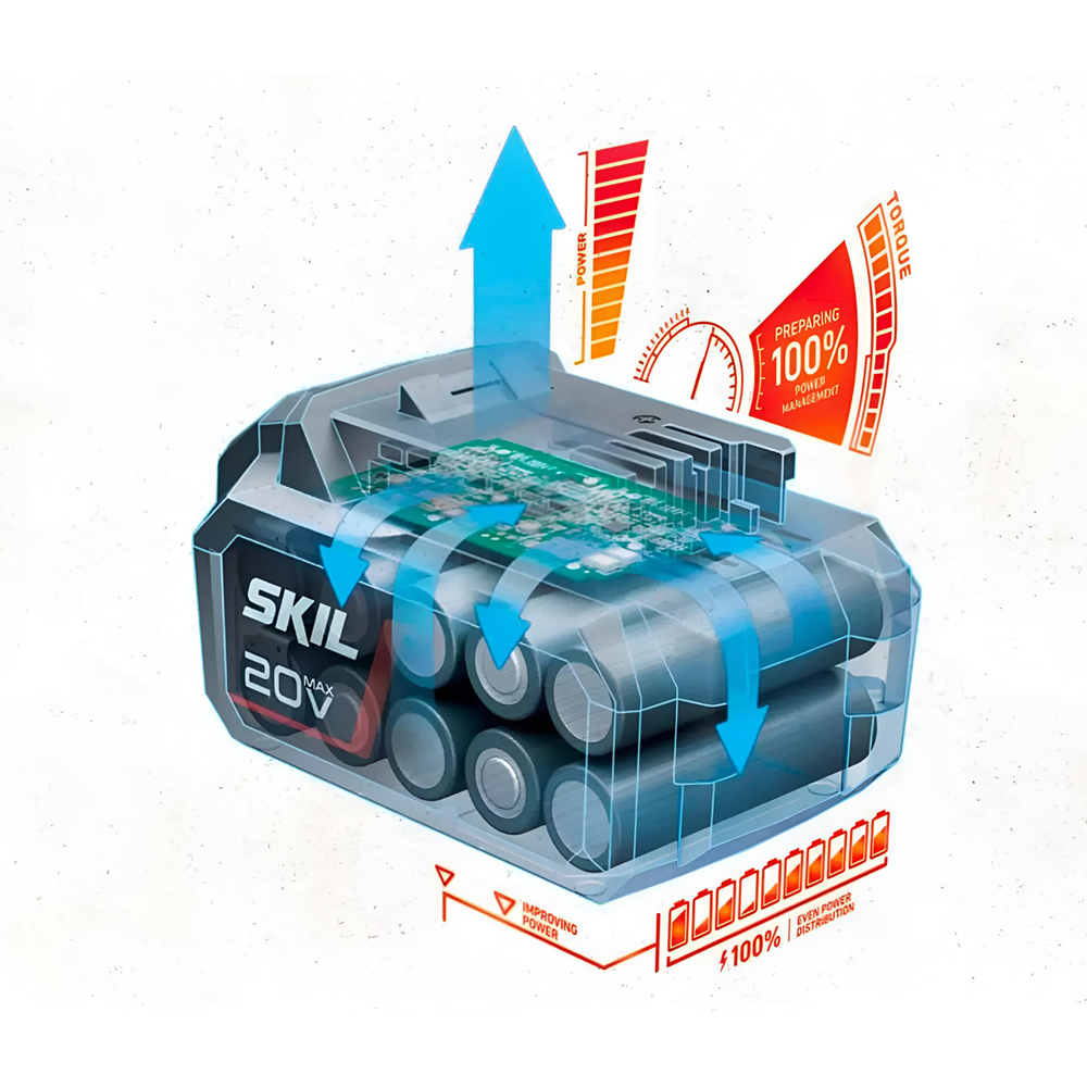 12V SKIL 전동공구라면 모두 호환하여 사용이 가능하며, 특허 배터리 기술 ACTIVCELL 지능형 전력 관리로 과열 방지 및 배터리 성능을 극대화합니다.
