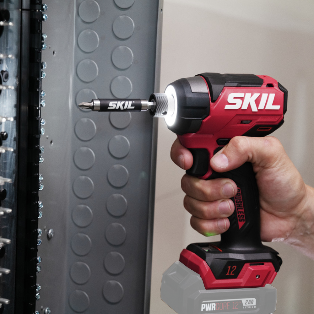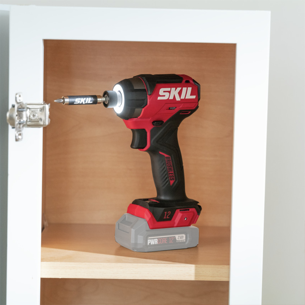 가벼운 무게와 강력한 파워의 SKIL PWR CORE 12™ 브러시리스 12V 1/4"(6.35mm) 임팩트 드라이버 세트입니다.