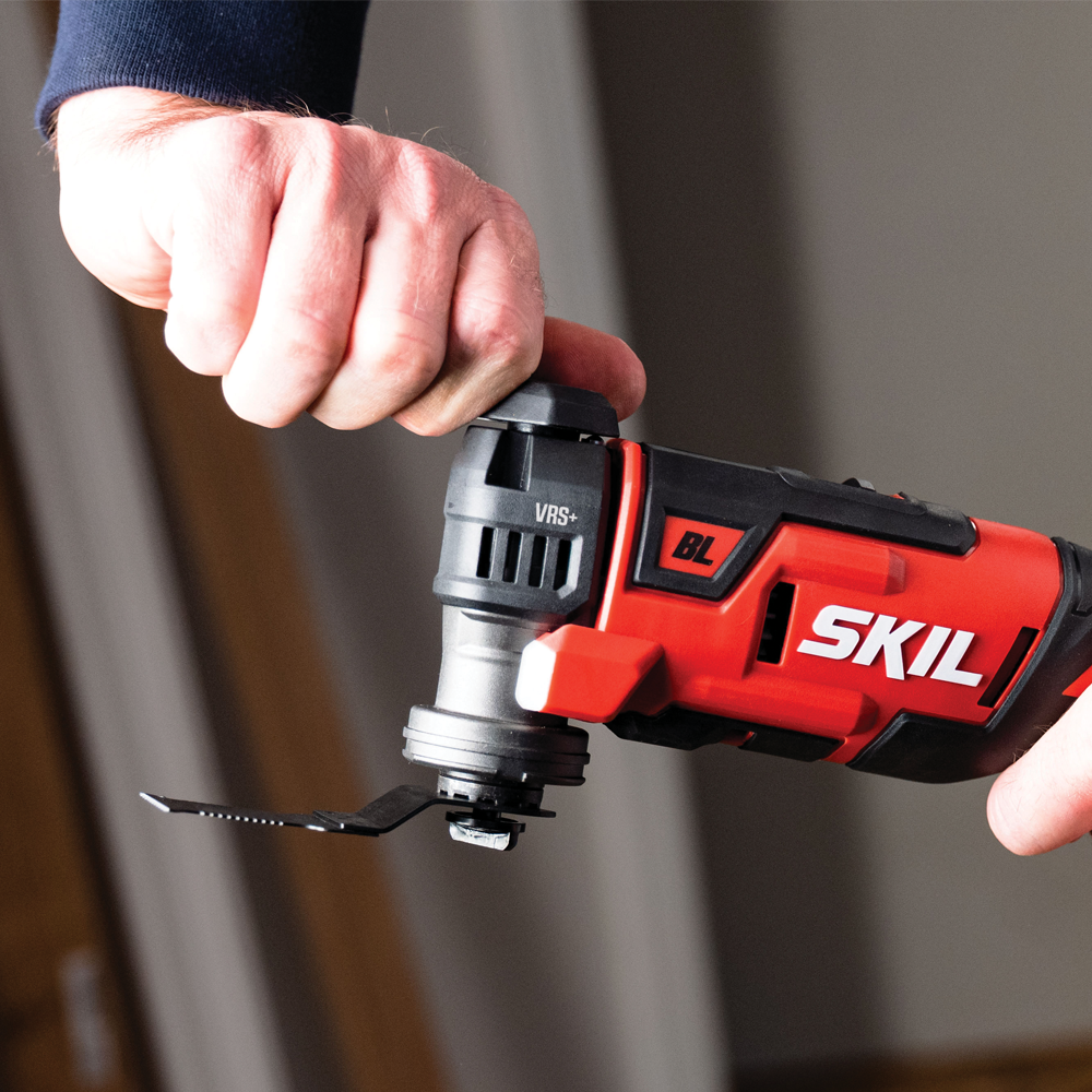 절단부터 샌딩, 스크레이핑, 치즐링까지 작업 가능한 범용 공구 SKIL PWR CORE 20™ 브러시리스 20V 저진동 멀티 커터 XP입니다.