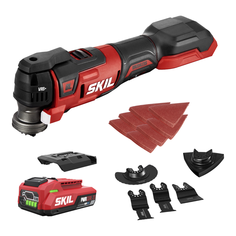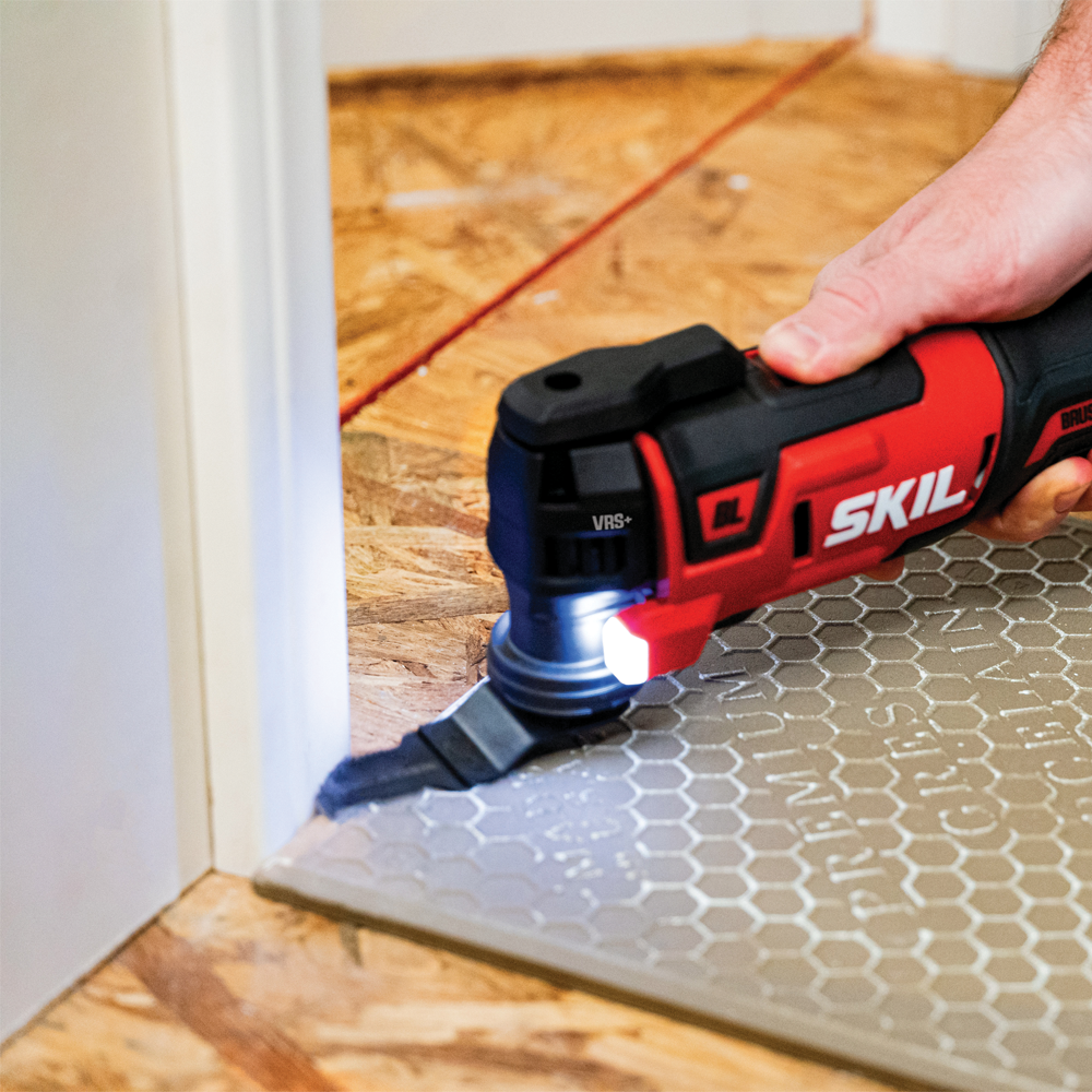 절단부터 샌딩, 스크레이핑, 치즐링까지 작업 가능한 범용 공구 SKIL PWR CORE 20™ 브러시리스 20V 저진동 멀티 커터 XP입니다.